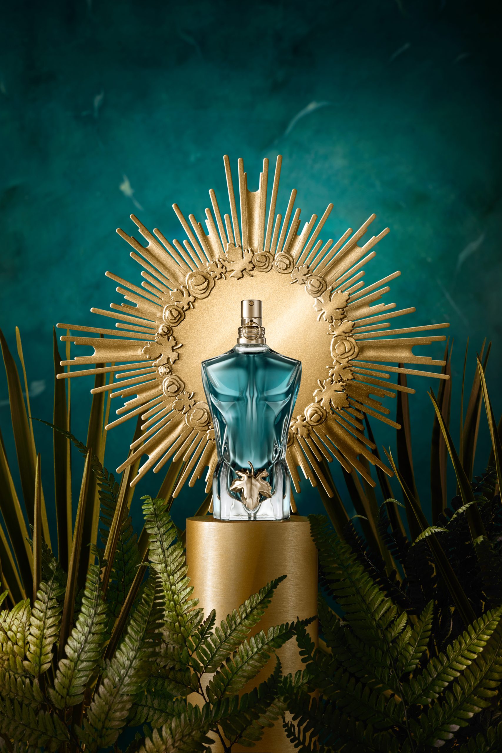 Il flacone sfoggia un fisico da sogno. Una figura slanciata, tutta muscoli e con una foglia di vite come unico indumento… Le Beau è espressione di una mascolinità ultra-sexy.